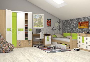 Комплект детской мебели Стиль К2 (модульная) Цвет туя светлая / белый глянец / лайм, туя светлая / белый глянец / кофе Размер - смотрите поэлементно Комплектацию можно менять и приобретать элементы по отдельности в любом количестве и сочетании None