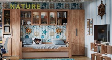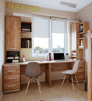 - Комплект мебели для подростковой с двумя рабочими местами Nature (модульная) по выгодной цене 23 600 р. руб.;