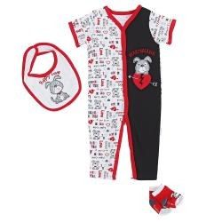 ---Цвет-Черный-Размер-56-62-Описaние-Оригинальный комплект для мальчика, включающий в себя стильный комбинезон контрастной расцветки, нагрудник с аппликацией и носочки в тон, станет отличным дополнением к гардеробу вашего малыша. Застежка на кнопки по всей длине значительно облегчает процесс переодевания и замены подгузника.-Размеры--Возраст, от-2-3 месяца-Состав изделия--Материал верха-Хлопок-Материал подкладки-Хлопок-Утеплитель-Без утеплителя-Внешний вид--Категория-Конверты, Комплекты на выписку-Пол-Для мальчиков-Сезон-Весна,Зима,Лето,Осень-Основной цвет-Черный- цвета-Комбинезон белого цвета с рисунком и черной вставкойАппликация "Щенок с сердечком" на передней сторонеДекоративная отделка красного цвета на горловине, манжетах и по линии застежкиНагрудник белого цвета с аппликацией и красной отделкой по краюКрасные носочки с белой резинкой и мыском и серой вставкой на пятке, декорированы рисунком с изображением мордочки щенка-Тип застежки-Кнопки-Комплектация-КомбинезонНагрудникНосочки-Упаковка--Размер упаковки (ВхШхД), см-60 x 30 x 1 см, вес 0.18 кг- None