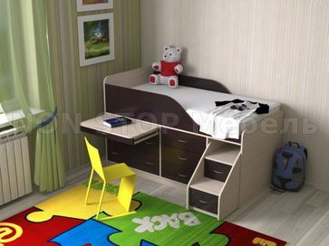 Закажите Кровать чердак Кузя-4 МИНИ с лестницей и горкой у компании NON STOP Мебель в Санкт-Петербурге на портале Alloy: