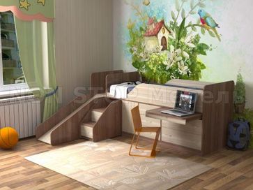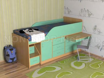 Закажите Кровать чердак Кузя-4 с лестницей и горкой у компании NON STOP Мебель в Санкт-Петербурге на портале Alloy: