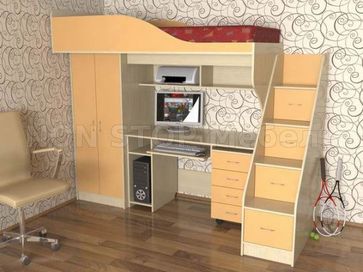 Закажите Кровать чердак с нишей Квартет лестница с ящиками у компании NON STOP Мебель в Санкт-Петербурге на портале Alloy: