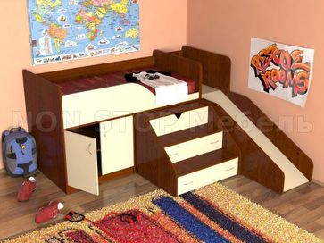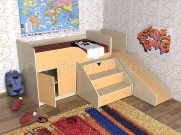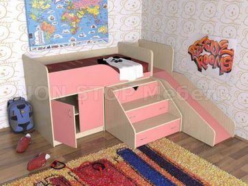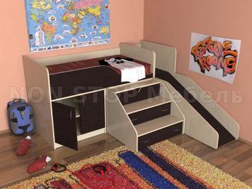 Закажите Кровать чердак с рабочей зоной Кузя с горкой у компании NON STOP Мебель в Санкт-Петербурге на портале Alloy: