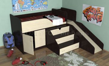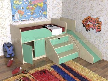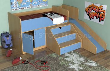 - Кровать чердак с рабочей зоной Кузя с горкой в каталоге Комплекты детской мебели в Санкт-Петербурге;