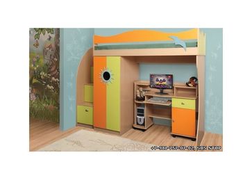 Кровать двухъярусная "Д1" (Премиум) в1870 х ш2400 х г840 Р-р ниши под компьютерный стол: 1460х1300х840 Цвет ЛДСП-Дуб молочный/ЛДСП-Оранжевый/ЛДСП-Зеленое яблоко Стол в комплект не входит - возможны варианты на выбор