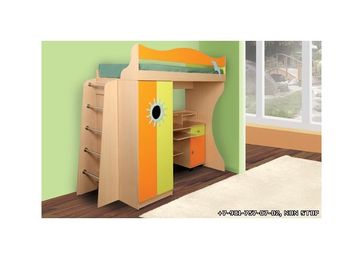 Кровать двухъярусная "Д1" (Стандарт) Габарит: в1870 х ш2234 х г838 Цветовое исполнение: ЛДСП-Дуб молочный/ЛДСП-Оранжевый/ЛДСП-Зеленое яблоко Стол в комплект не входит - возможны варианты на выбор