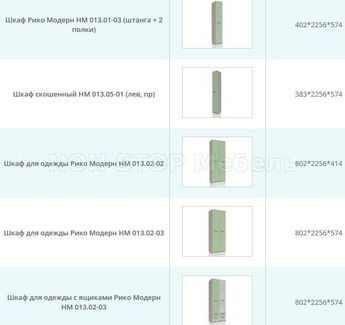 - Набор мебели Рико ЛДСП Модерн компл 1 по выгодной цене 28 570 р. руб.;
