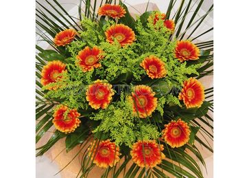 15 Гербер, солидаго, пальма, берграсс, джут None