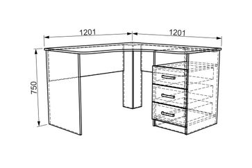 У стола универсальная сборка — тумба может быть как справа, так и слева. Изготовлен из ЛДСП 16 мм с ПВХ кромкой Схема