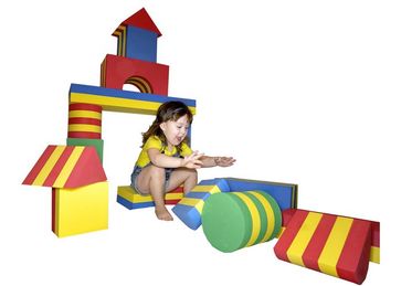 Набор 16 деталей, 9 видов фигур.Упакован в картонную коробку. Детали мягкие и очень приятные на ощупь. Большая стройка у Вас дома! Не имеет запаха, материал абсолютно безвреден и экологичен
