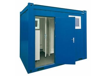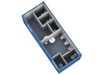 Санитарные блок контейнеры поставляются в состоянии полной готовности. В комплекте поставки санитарного контейнера имеется необходимая фурнитура, сантехнические приборы, окна, роллеты, двери, электрооборудование, осветительные, электро- и водонагревательные приборы (в соответствие с заказанной комплектацией контейнера). Доставка санитарных контейнеров осуществляется автотранспортом. Габариты контейнеров позволяют размещать их для транспортировки на стандартной платформе грузового автомобиля. Модульные туалеты и душевые используются в составе блочно модульных зданий или как самостоятельные санитарные контейнеры на строительных площадках, в общественных местах и т.п. Контейнеры изготавливаются различной планировки и с разнообразным оснащением. Возможны планировка и оснащение на заказ. Контейнер построен на прочной сварной стальной раме, стены изготовлены из сэндвич-панелей, покрытие и пол утеплены.