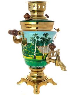 Латунный самовар с термостойкой росписью Наличные, VISA/Mastercard, б/н расчет Страна производства: Россия
