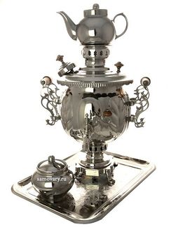 Набор: самовар, поднос, заварочный чайник и сахарница. Труба для отвода дыма в комплекте. Наличные, VISA/Mastercard, б/н расчет Страна производства: Россия