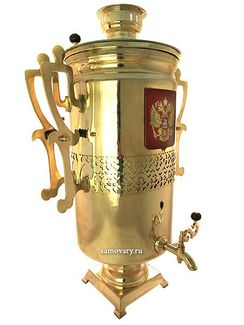 Латунный самовар с накладным гербом. Труба для отвода дыма в комплекте. Наличные, VISA/Mastercard, б/н расчет Страна производства: Россия