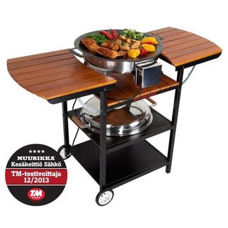 Уникальная Электрическая Летняя кухня всегда готова к использованию. Источник тепла - электрогриль Muurikka - обеспечивает равномерный нагрев, а температуру можно регулировать в зависимости от вида приготавливаемой еды. Новая элегантная модель Basic с металлической рамой, предоставляющая много места для работы и хранения предметов. Боковые полости для экономии места могут быть откинуты вниз. Деревянные детали доступны в трех цветовых вариантах -черном,коричневом (натуральноедерево),сером.