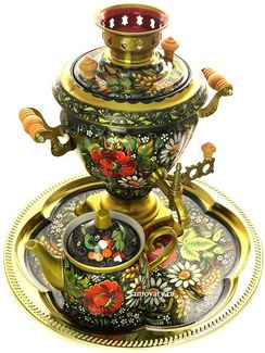 Комплект из трех предметов: латунный самовар, металлический поднос и заварочный чайник Наличные, VISA/Mastercard, б/н расчет Страна производства: Россия