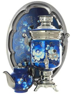 - Набор самовар электрический 3 литра "Жостово на синем" с автоматическим отключением при закипании, арт. 130588к по выгодной цене 15 900 р. руб.;