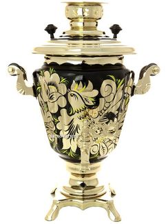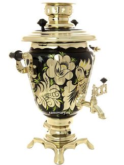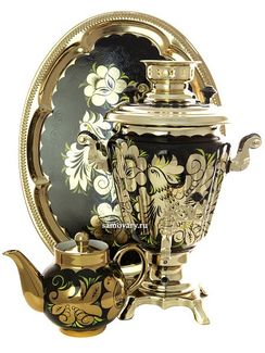 - Самовар электрический 3 литра с чайником и подносом, роспись "Золотые цветы на черном фоне" с автоотключением, арт. 161656а по выгодной цене 14 150 р. руб.;