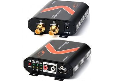 Преобразователь сигналов 3G/HD/SD-SDI в сигналы HDMI с стерео звуком. Конвертер может автоматически обнаруживать 3G, HD или SD-SDI. Конвертер полностью поддерживает все аудио форматы, вплоть до 8-канального и передаёт звук через порт HDMI, а также через отдельный выход стерео аудио. None
