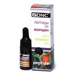 ---Описaние-Пептиды для лица DNC Anti-Wrinkle Gel восстанавливают упругость, тонус и поврежденные клетки, увлажняют и омолаживают, мягко заполняют морщины, уменьшают тусклость и неравномерность цвета. Благодаря своему строению молекулы пептидов наилучшим образом включаются в биологическую цепочку синтеза коллагена, значительно усиливая его выработку. Возрастающая наполненность кожи компенсирует возрастные изменения структуры, возвращая коже более молодой вид и упругость. Препарат активирует производство собственного коллагена и защищает его от разрушения.-Общая информация--Тип средства-Гель для лица-Тип кожи-Для всех типов кожи-Показания к применению-Мимические морщины,Потеря упругости,Тусклая кожа-Эффект от использования-Восстановление/Регенерация,Выравнивание тона,Омоложение,Повышение упругости,Разглаживание,Тонизирование-Зона применения-Для лица-Возраст-Для любого возраста-Пол-Для женщин-Страна производства-Россия-Упаковка-Картонная коробка-Техническая информация--Объем-10 мл-Активные компоненты-Гиалуроновая кислота,Гидролат огурца,Гидролизат эластина,Глицерин,Пептидный комплекс,Фермент редиски,Экстракт боярышника,Экстракт липового цвета,Экстракт листа земляники,Экстракт расторопши-Способ применения-Распределите гель по коже, следуя направлению мимических морщин.-Состав-Cucumis Sativus Fruit Water (Гидролат Огурца), Palmitoyl Tripeptide-5 (Пептидный Комплекс), Leuconostoc/Radish Root Ferment Filtrate (Леуконосток/Фермент Редиса), Hyaluronic Acid (Гиалуроновая Кислота), Glycerin (Глицерин), Tilia Cordata Flower Extract (Экстракт Липового Цвета), Hydrolyzed Elastin (Гидролизат Эластина), Fragaria Vesca Leaf Extract (Экстракт Листа Земляники), Silybum Marianum Extract (Экстракт Расторопши), Crataegus Sanguinea Extract (Экстракт Боярышника).-Рекомендации-Наносится на очищенную кожу один раз в день. После длительного применения стоит сделать перерыв в 1-2 недели.-Упаковка--Размер упаковки (ВхШхД), см-13 x 3 x 3 см, вес 0.1 кг-Информация о производителе--Производитель-