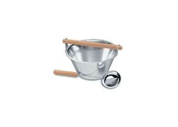 Набор для сауны - ведро 5 л с ковшом. Изготовлен из качественной нержавеющей стали. Отличный подарок для любителя сауны и бани. None