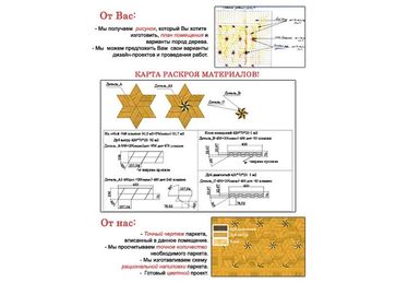 Изготовление Карты раскроя паркета это: изготовление точного чертежа паркета, вписанного в размеры данного помещения; подсчет точного количества паркета, необходимого для изготовления выбранных рисунков основного поля, фриза, отбоя, розеток.... Любая сложность художественного паркета. Есть доставка.