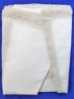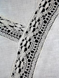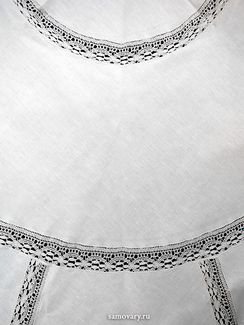 - Вологодская льняная скатерть цвет слоновой кости со светлым кружевом и кружевной вышивкой, арт. 6с-643, d-175 в каталоге Кружева в Санкт-Петербурге;