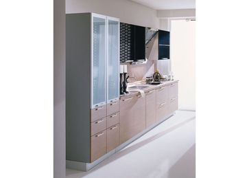 Модель отличает многообразие цветов и стильный современный дизайн. Фасады выполнены из ДСП, покрытого глянцевым пластиком. Возможен выбор из 11 цветов: 1) жёлтый, 2) мираж, 3) кристалл, 4) морковный, 5) бордо, 6) индиго, 7) мокко, 8) молодая трава, 9) клён, 10) оливковое дерево, 11) палисандр. Фасад под стекло - алюминиевая рамка со стеклом "Сатинато".