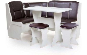 Кухонный набор Орхидея белый/умбер отлично впишется в интерьер любой кухни. Модель отличается качественными материалами и ярким исполнением сидений и спинок. Комплект включает в себя: кухонный уголок 1500 x 1100 х 880 мм обеденный стол 1000 x 580 х 750 мм 2а табурета 380 x 300 х 450 мм Под мягкими сиденьями расположены вместительные ящики для хранения сопутствующих предметов. None Есть доставка.