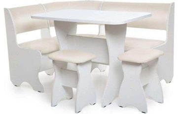 Кухонный набор Тюльпан дополнит мебельный гарнитур Вашей кухни. Он удобен в пользовании, имеет мягкие сиденья и спинки, оборудован ящиками для хранения. В состав набора входят: уголок, стол и две табуретки с мягкими сиденьями. Размеры кухонного уголка: Д1000 x Ш1350 х В880 мм Размеры стола: Д1000 x Ш580 х В750 мм. Размеры табурета: Д380 x Ш300 х В450 мм. Кухонный уголок может собираться на любую сторону. Столешница стола пластиковая термостойкая. Обратите внимание на кухонный набор Тюльпан в цвете венге/милк. None Есть доставка.
