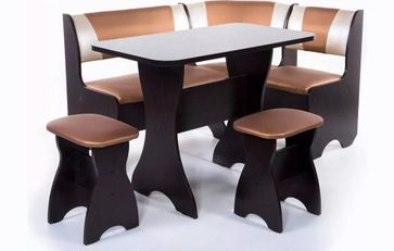 Кухонный набор Тюльпан дополнит мебельный гарнитур Вашей кухни. Он удобен в пользовании, имеет мягкие сиденья и спинки, оборудован ящиками для хранения. В состав набора входят: уголок, стол и две табуретки с мягкими сиденьями. Размеры кухонного уголка: Д1000 x Ш1350 х В840 мм Размеры стола: Д1000 x Ш600 х В750 мм. Размеры табурета: Д380 x Ш300 х В450 мм. Кухонный уголок может собираться на любую сторону. Столешница стола пластиковая термостойкая. Обратите внимание на кухонный набор Тюльпан в цвете венге/109-101. None Есть доставка.