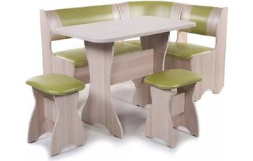 Кухонный набор Тюльпан дополнит мебельный гарнитур Вашей кухни. Он удобен в пользовании, имеет мягкие сиденья и спинки, оборудован ящиками для хранения. В состав набора входят: уголок, стол и две табуретки с мягкими сиденьями. Размеры кухонного уголка: Д1000 x Ш1350 х В840 мм Размеры стола: Д1000 x Ш600 х В750 мм. Размеры табурета: Д380 x Ш300 х В450 мм. Кухонный уголок может собираться на любую сторону. Столешница стола пластиковая термостойкая. Обратите внимание на кухонный набор Тюльпан в цвете ясень светлый/105-101. None Есть доставка.