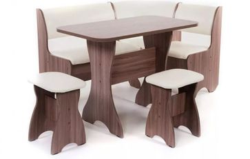 Кухонный набор Тюльпан дополнит мебельный гарнитур Вашей кухни. Он удобен в пользовании, имеет мягкие сиденья и спинки, оборудован ящиками для хранения. В состав набора входят: уголок, стол и две табуретки с мягкими сиденьями. Размеры кухонного уголка: Д1000 x Ш1350 х В840 мм Размеры стола: Д1000 x Ш600 х В750 мм. Размеры табурета: Д380 x Ш300 х В450 мм. Кухонный уголок может собираться на любую сторону. Столешница стола пластиковая термостойкая. Обратите внимание на кухонный набор Тюльпан в цвете ясень темный/крем. None Есть доставка.