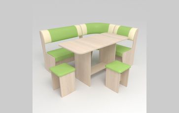 скамья угловая (1060х1564х800) Высота сидения — 430мм, Высота спинки — 800мм, Длина большого ящика для хранения — 950мм, Ширина большого ящика для хранения — 240мм, Глубина большого ящика для хранения — 180мм, Длина малого ящика для хранения — 470мм, Ширина малого ящика для хранения — 240мм, Глубина малого ящика для хранения — 180мм, стол обеденный (1015х580х710), табурет с мягкой обивкой (310х310х430) — 2 шт. None Страна производства: Россия Есть доставка.