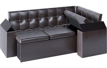 Кухонный диван Остин — удобное дополнение к кухонному гарнитуру. Диван трансформируется в спальное место с помощью выкатного механизма трансформации. Подлокотники не деформируются благодаря вставкам ЛДСП. Комплект выполнен из ЛДСП (каркас) и кожзама (мягкие элементы). Под боковым сиденьем и в подлокотниках расположены ящики для хранения. На ваш выбор предлагаются два варианта цвета: венге цаво / кожзам коричневый и дуб сонома трюфель / кожзам светлый. None Страна производства: Россия Есть доставка.