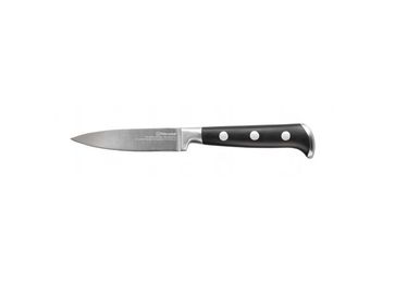 Нож для чистки овощей Длина: 9 см Вес 0.1 кг Высококачественная немецкая нержавеющая сталь X30CrMoV15 - нож долго держит заточку, имеет хорошие антикоррозийные свойства. Классика дизайна - трехклепочное крепление! Рукоятка - сталь/бакелит - гигиенично в уходе! Нож продается индивидуально - можно создать свой комплект Страна производства Германия