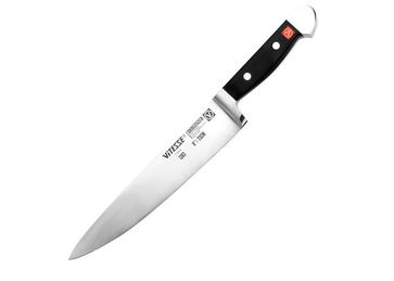 Нож поварской Cuisine Материал лезвия ножа - Нержавеющая сталь Материал ручки ножа - Бакелит Цвет ручки - черный Бренд - ViTESSE Размер коробки, см - 41,00 х 9,00 х 3,00 Вес,кг - 0,440 Длина и толщина: 9" / 23 см, 3 мм