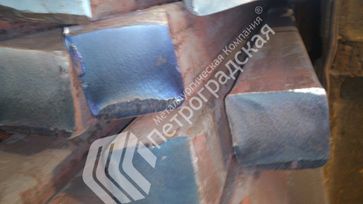 При поставке квадратного проката допускаются глубокая вырубка и зачистка поверхности на двух противоположных гранях в одном перпендикулярном сечении для квадратных заготовок, предназначенных к прокатке не более 8% номинальной толщины или не более 15 мм для квадратных заготовок, предназначенных к свободной ковке.