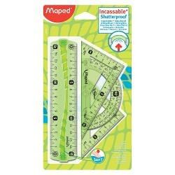 набор чертежных инструментов Maped Flex, неломающийся, мини: линейка 15см, угольники 12см, транспортир 10см 244069