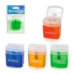 точилка Brauberg OfficeBox, с контейн. и крышкой, прямоуг., ассорти 222494
