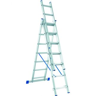 Универсальная лестница трехсекционная может использоваться и как стремянка, и как раздвижная лестница. Две высокопрочные ленты и распорки с фиксацией служат для придания устойчивости опоре. Концы стойки с ножками лестницы предотвращают скольжение. Верхняя и центральная части оснащены защитным устройством, предохраняющим от случайного опускания и складывания. Компактная конструкция лестницы облегчает хранение и транспортировку. Легкое обслуживание, безопасное соединение под давлением. Длина лестницы в сложенном виде (м): 1.69Длина лестницы в режиме "Приставной" (м): 3.36Длина лестницы в режиме "Стремянки" (м): 2.51Ширина лестницы (м): 0.445 None Страна производства: Россия