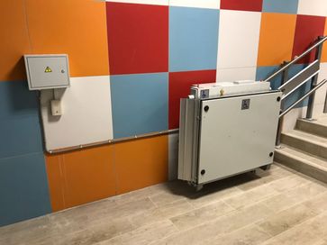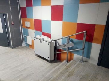 Подъемная платформа БК 350 с наклонным перемещением предназначена для передвижения лиц с ограниченными возможностями вдоль лестничного марша по прямой траектории.
