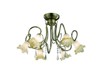 Производитель: Blitz Люстра потолочная. Стеклянные плафоны выполнены в виде распустившихся бутонов тюльпана и расположены на изящно изогнутых металлических "стеблях". Декоративные подвески выполнены из хрусталя. Способ крепления: на монтажную пластину, которая крепится к потолку. Плафоны люстры слегка направлены в стороны, что создает объёмное освещение. Свежесть и романтику весны подарит эта люстра любому помещению. Подходит для освещения 14 кв. м. Cхема сборки и подключения в комплекте. Высота: 36 см Диаметр: 67 см Стиль: Флористика Цвет арматуры: бронза Цвет плафона: полупрозрачный белый с янтарным краем Материал плафонов: стекло Тип поверхности плафонов: глянцевый Цвет арматуры: бронза Материал арматуры: металл Тип поверхности арматуры: сатин Цоколь: G9 Тип лампы: галогеновая Наличие ламп: да Количество ламп: 6 Мощность лампы W: 40 W Напряжение: 230 V Возможность подключения диммера: возможно Степень пылевлагозащиты: IP20 Продаем в кредит. Более 15 видов оплаты, WM, ЯД. Можно купить без предварительного заказа. Возможен самовывоз. Есть доставка. Доставка: 350.0RUR