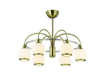 Люстра подвесная Производитель: Blitz Люстра подвесная с металлическим основанием цвета латуни. Стеклянные матовые плафоны с металлической каймой по краю. Способ крепления: крепление к монтажной пластине. Люстра отличается оригинальным и изящным основанием. Подойдет помещениям среднего размера с высокими потолками. Подходит для освещения 14 кв. м. Cхема сборки и подключения в комплекте. Высота 76 см Диаметр 62 см Стиль: модерн Цвет плафона: белый, бронза Материал плафонов: стекло, металл Тип поверхности плафонов: матовый Цвет: арматуры латунь Материал арматуры: металл Тип поверхности арматуры: матовый Цоколь: E14 Тип лампы: накаливания либо энергосберегающая Наличие ламп: нет Количество ламп: 6 Мощность лампы W: 40 W Напряжение: 230 V Возможность подключения диммера: возможно Степень пылевлагозащиты: IP20 Продаем в кредит. Более 15 видов оплаты, WM, ЯД. Можно купить без предварительного заказа. Возможен самовывоз. Есть доставка. Доставка: 350.0RUR