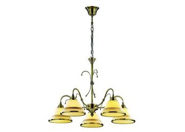Производитель: Blitz Люстра подвесная на цепи, с металлическим основанием. Плафоны выполнены из стекла янтарного желтого цвета, украшены коричневыми полосками и металлической каймой по краю. Способ крепления: крепление осуществляется на крюк. Особенность светильника: можно изменять высоту за счет звеньев цепей, максимальная высота люстры 92 см. Люстра хорошо будет смотреться в помещениях с высокими потолками. Янтарные матовые плафоны люстры создадут теплый летний свет, который согреет Вас и в пасмурные дни. Подходит для освещения 12 кв. м. Cхема сборки и подключения в комплекте. Высота 92 см Диаметр 68 см Стиль: Классический стиль Цвет плафона: янтарно-желтый с коричневыми полосками Материал плафонов: стекло Тип поверхности плафонов: матовый Цвет арматуры латунь Материал арматуры: металл Тип поверхности арматуры: глянцевый Цоколь: E27 Тип лампы: накаливания либо энергосберегающая Наличие ламп: нет Количество ламп: 5 Мощность лампы W: 40 W Напряжение: 230 V Возможность подключения диммера: возможно Степень пылевлагозащиты: IP20 Продаем в кредит. Более 15 видов оплаты, WM, ЯД. Можно купить без предварительного заказа. Возможен самовывоз. Есть доставка. Доставка: 350.0RUR