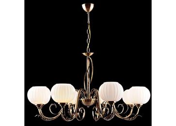 Мощность ламп: 60 Вт Количество ламп: 8 Шт. Лампы: E27 Длина: 85 см Ширина: 85 см Высота: 80 см Цвет плафона: белый Материал плафонов: стекло Тип поверхности плафонов: рельефный Цвет арматуры: античная бронза Материал арматуры: металл Тип поверхности арматуры: матовый Тип лампы: накаливания либо энергосберегающая лампа