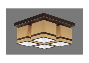 Ширина: 40 см. Высота: 20 см. Покрытие: темно-коричневый Плафон: голландская ткань Источник освещения: E27 Количество ламп: 4 Максимальная мощность: 4*60W