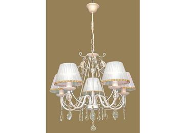 Люстра в классическом стиле для гостиных Плафоны - ткань белого цвета, стеклянные подвески. Материалы: металл/ткань/стекло. Цвет основания - белый, золотой штрих Макс. мощность - 5x60 W, E14 Высота: 430 мм. Диаметр (ширина): 580 мм. Продаем в кредит. Более 15 видов оплаты, WM, ЯД. Можно купить без предварительного заказа. Возможен самовывоз. Есть доставка. Доставка: 350.0RUR