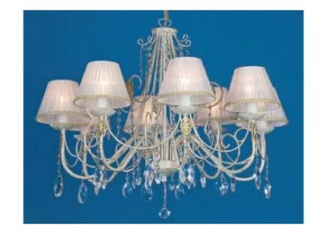 Люстра в классическом стиле для гостиных Цвет основания - белый, золотой штрих Плафоны - ткань белого цвета, стеклянные подвески. Материалы: металл/ткань/стекло. Макс. мощность - 8x60 W, E14 Высота: 530 мм. Диаметр (ширина): 700 мм. Продаем в кредит. Более 15 видов оплаты, WM, ЯД. Можно купить без предварительного заказа. Возможен самовывоз. Есть доставка. Доставка: 350.0RUR