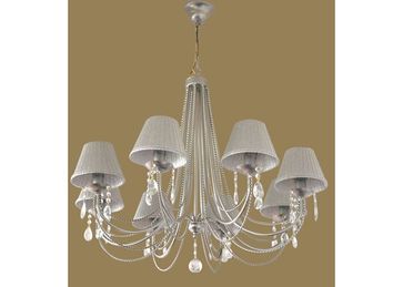 Люстра в классическом стиле с абажурами Цвет основания - cеребристый Подвески из прозрачного стекла. Материалы: металл/ткань/стекло. Макс. мощность - 8x60 W, E14 Высота: 650 мм. Диаметр (ширина): 800 мм. Продаем в кредит. Более 15 видов оплаты, WM, ЯД. Можно купить без предварительного заказа. Возможен самовывоз. Есть доставка. Доставка: 350.0RUR